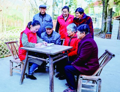 浙江长兴县和平镇方家庄村便民服务中心党员志愿者为村里的