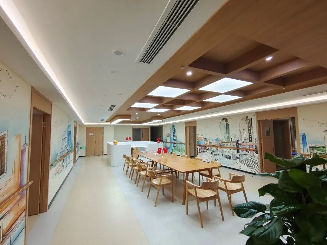 位于中心二、三楼的长者照护之家共设有49张床位,其中23张为认知照护床位,立足“小单元家庭照护模式”理念,加大老年人公共空间活动设计,满足社区内认知障碍老人刚性照护需求,提供专业个案护理。中心还引入智能照护系统,实现日常管理和安全防护智能化。