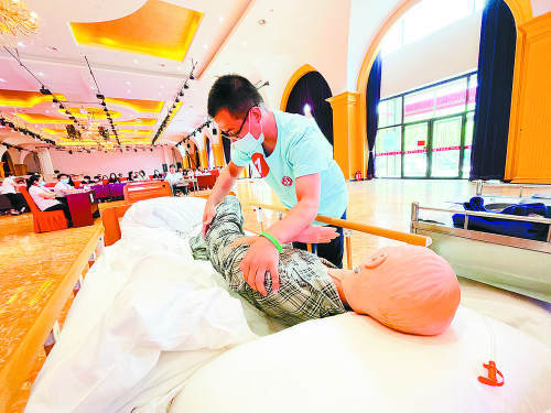 “预选赛的理论知识考核占总分的30%,操作技能考核占总分的70%。同时,预选赛以长期养老护理技能考核为主要内容,突出养老服务业特色,重点考核参赛选手的知识储备和应用能力、操作技能和执行能力以及人文关怀能力。”预选赛裁判员穆宝平说。