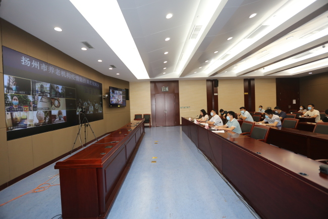 会议听取了扬州市民政局最新疫情防控情况汇报,并实时连线扬州市社会福利中心、广陵区李典敬老院、邗江玖玖江南长者护养中心等10家养老机构,进行了检查与询问。