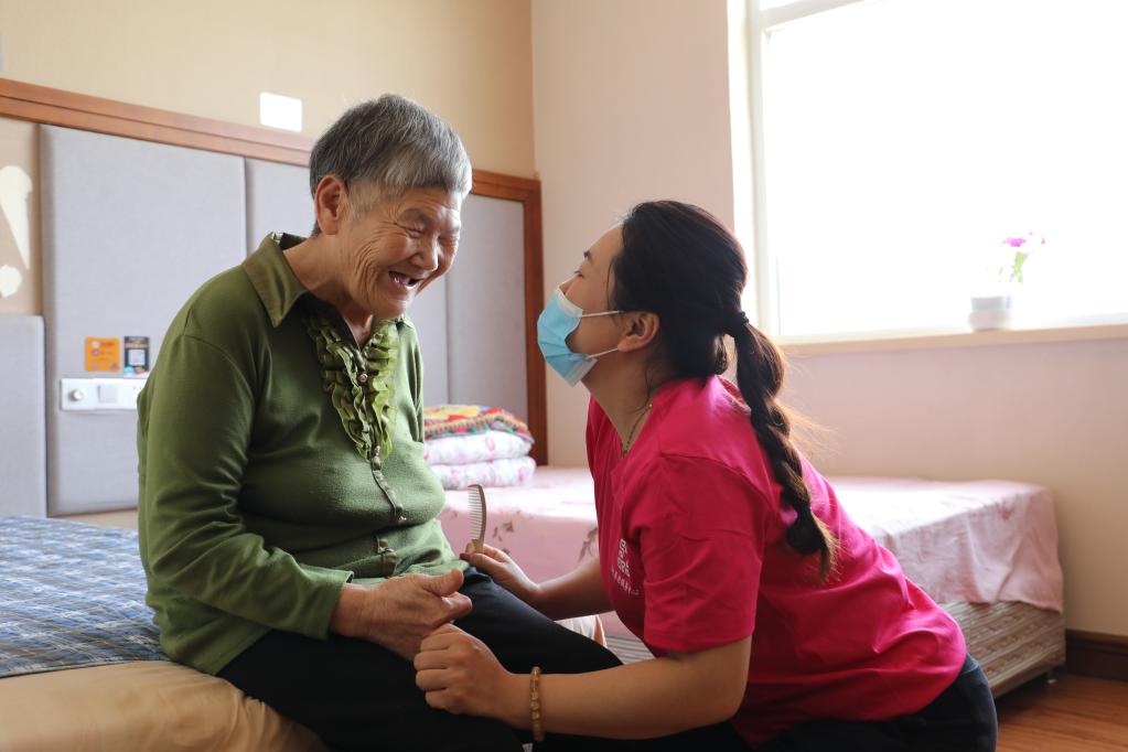 河北易县易水养老服务中心的工作人员在悉心照料老人。(受访者供图)