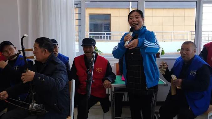 张北县公会镇幸福港湾养老院正在举行文艺表演活动。 石炎夏摄
