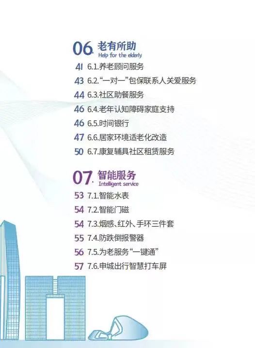 “指引”末尾,提到了近两年推出的智能服务,包括智能水表、智能门磁、防跌倒报警器等,通过高科技有效助力老年人高品质生活。