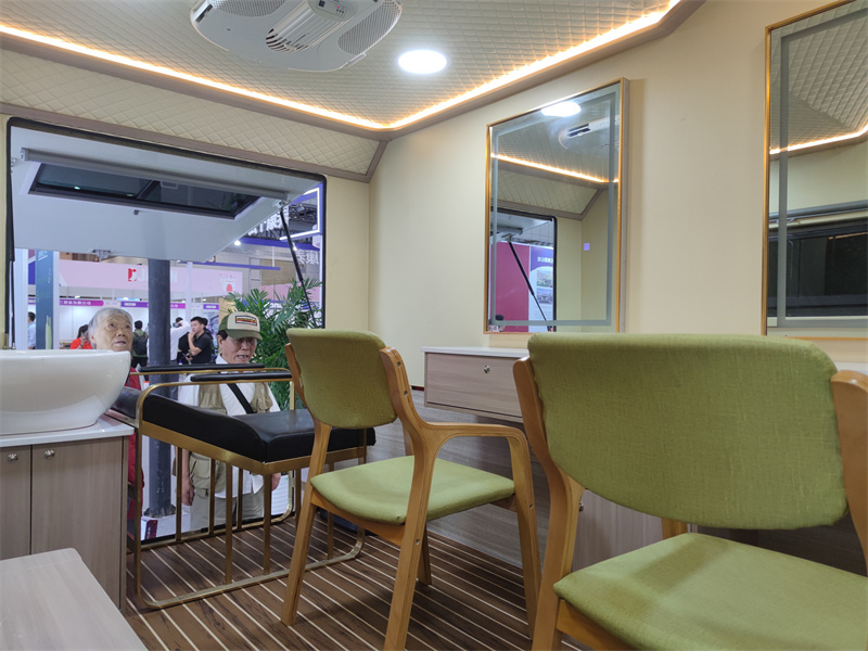 走进卧室,满满的科技感扑面而来,其中一款老人洗澡辅助“神器”吸引老人围观。这款洗澡机将过去机器洗澡过程中的8次翻身减少到2次,减少人工抱、托、挪等,极大地降低护理风险,老人更舒适、子女更放心。郑培又指着其他产品介绍:“这辆智能康复型电动轮椅适用于失能、半失能老人,电动逍遥功能可使轮椅像摇摇椅一样前后15度摇摆,舒缓坐姿疲劳,减轻身体压力。智能监护垫能监测老人睡眠、心率、呼吸情况,提供夜间离床过久报警和非正常作息预警。”