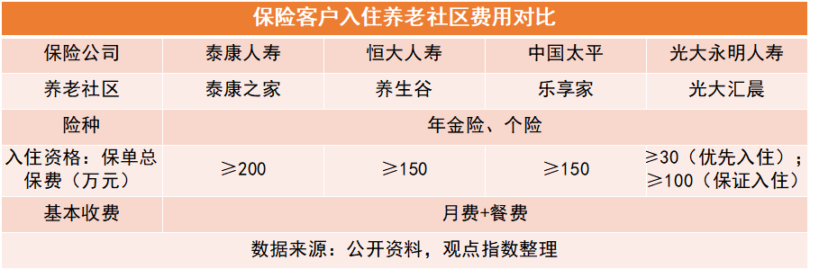 保险客户入住则是根据其所购买保险来获取入住资格,入住后每月再缴纳月费。该模式为现今保险养老社区所采取的主要收费方式,所购险种多为年金险。