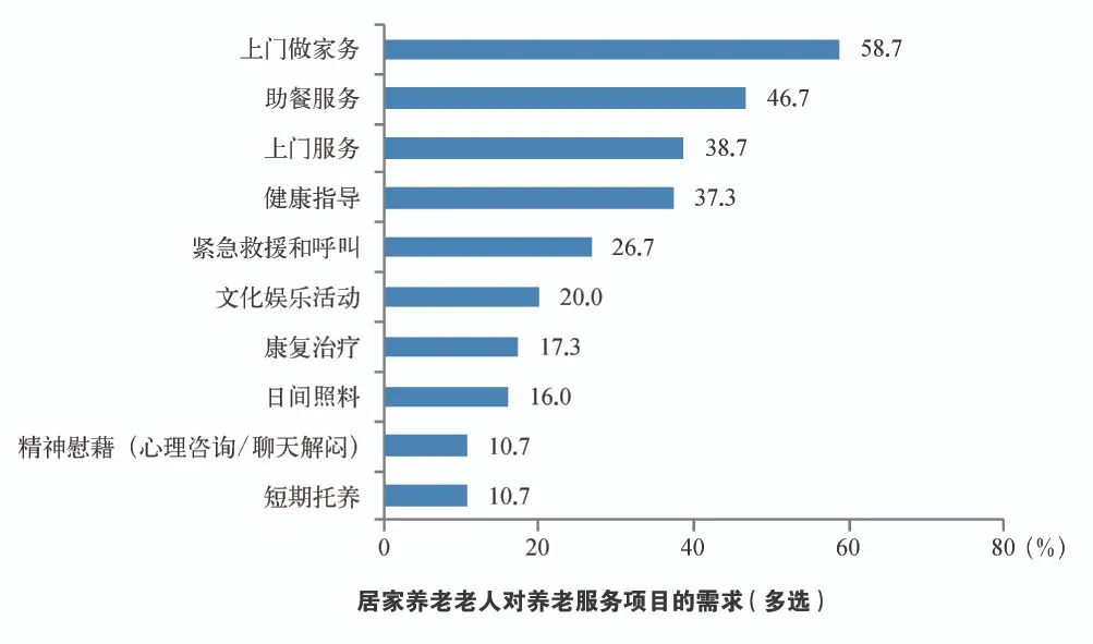 ❸ 上门做家务成为居家养老老人的最大需求。调查显示,居家养老老人对于养老服务的需求最多的是上门做家务,其次是助餐、上门服务、健康指导。已享受的社区老年服务项目主要为免费的身体检查和体检,占调查对象的48.0%;其次是节日慰问,占22.7%;32%调查对象表示从未享受到社区服务项目。