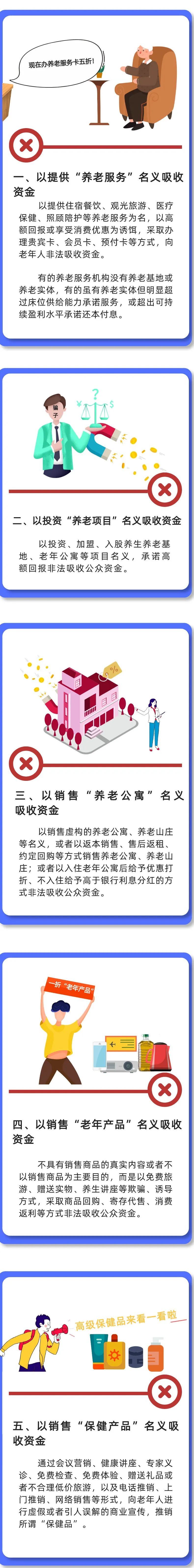 为有效防范养老领域非法集资风险,避免老年人财产损失,有力打击非法集资违法犯罪行为,提醒广大市民特别是老年朋友警惕以下风险: