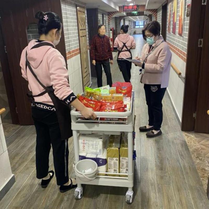 疫情期间,除了化身为“Tony老师”的护理员,各养老机构纷纷出招,想尽办法满足老人各项生活要求。在红日养老院,为了解决老人购买生活用品难的问题,院方每周搜集统计老人的购物需求,由专人统一采购回院,经过消毒后再搬上小推车,护理员推着“移动超市”往来于生活区,为老人送去所需物品。“这样的做法,杜绝了外来物品的潜在风险,移动支付也进一步杜绝了纸币可能带来的病毒流通风险。”红日养老集团董事长陈琦说。