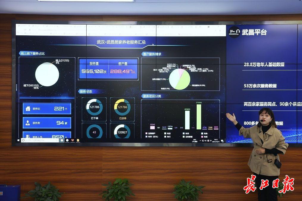 工作人员介绍养老中心的智能平台。长江日报记者胡冬冬 摄