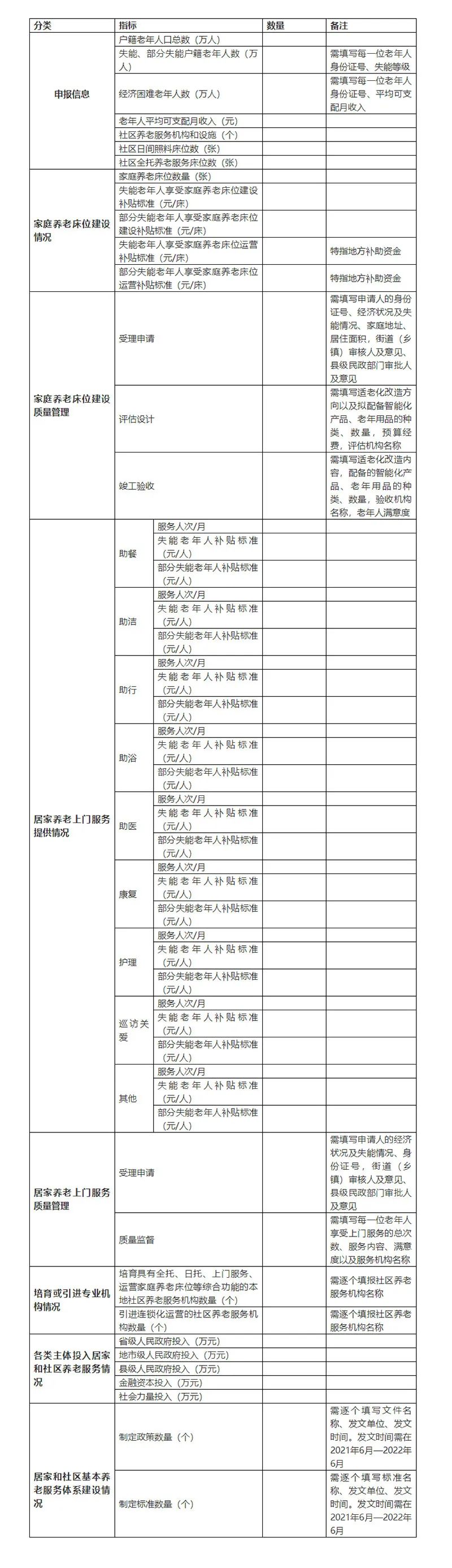 金民工程“居家和社区基本养老服务提升行动项目”版块采集信息