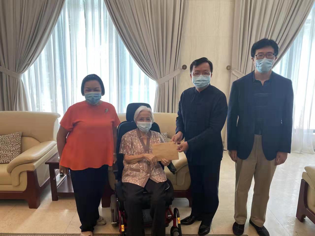 黄溪连大使与两家华人养老院代表座谈并捐款